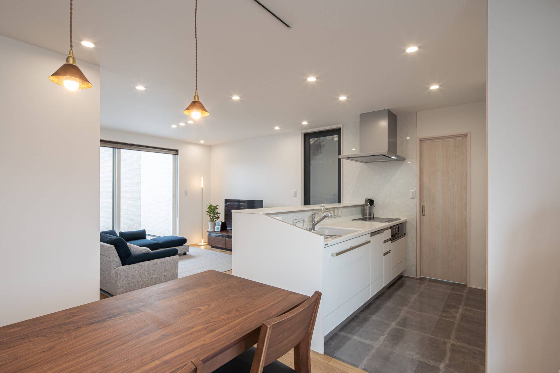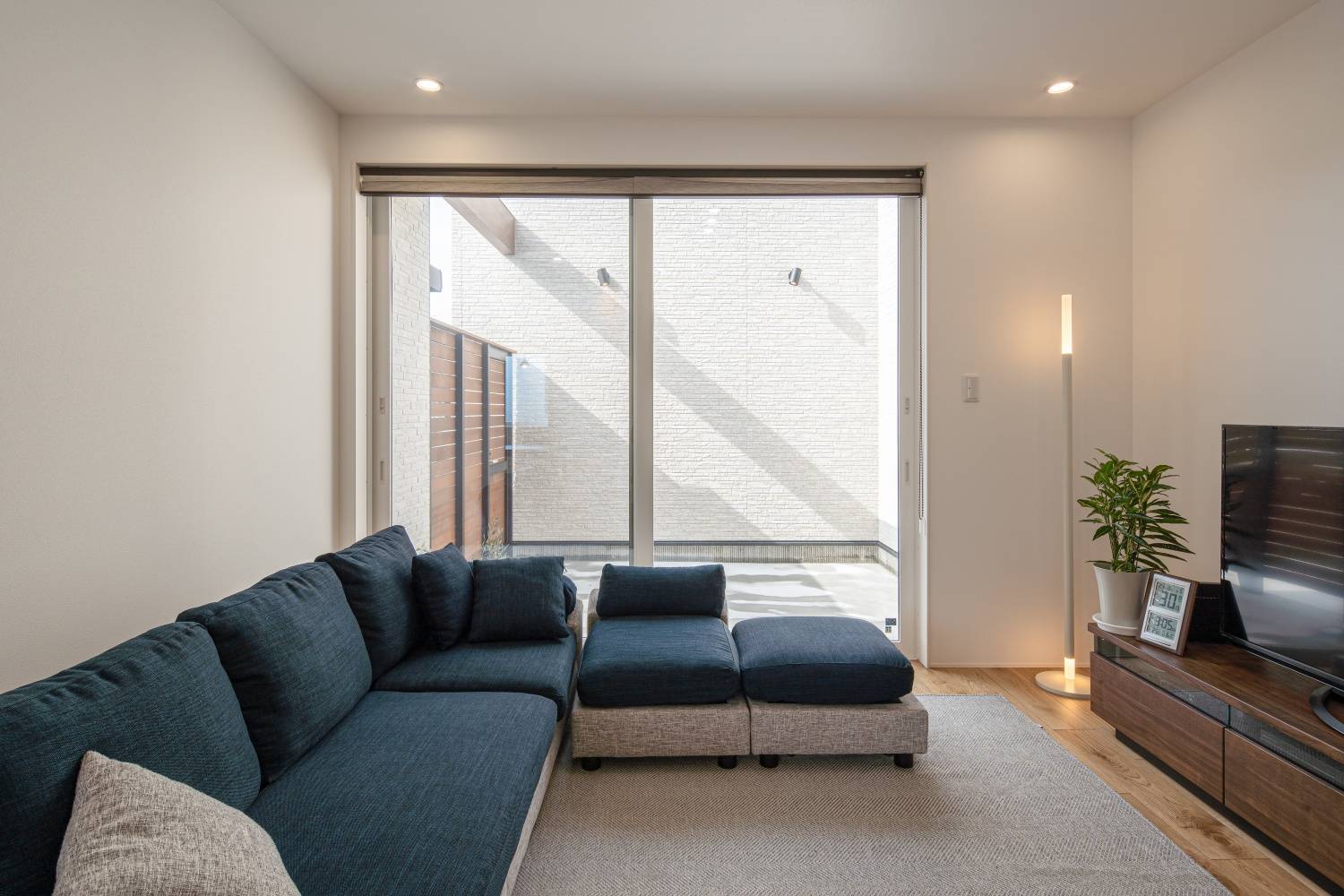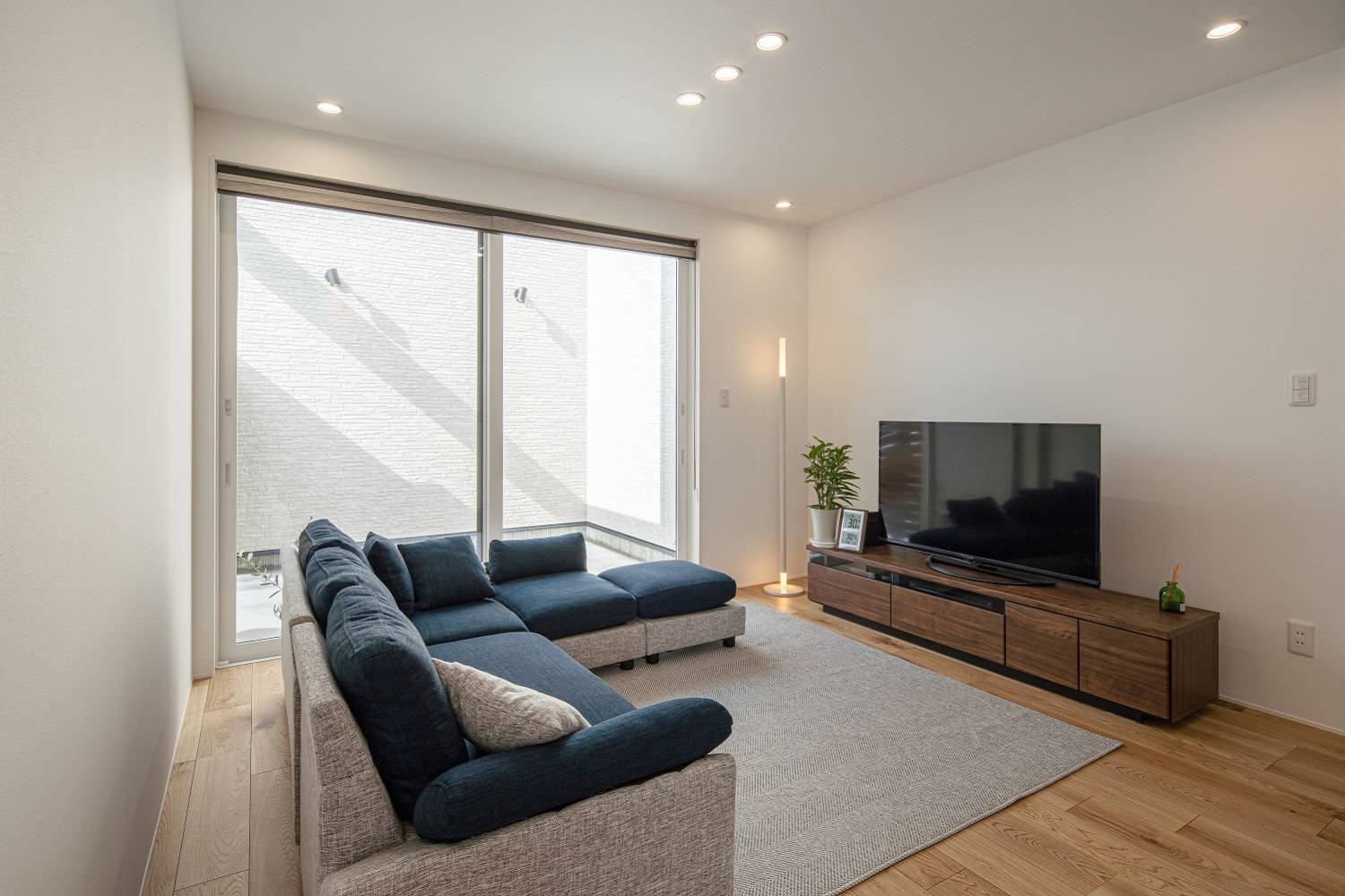 外部からの視線を遮る中庭が憧れでした。 南面には隣家があるため、中庭を作ってもお隣の二階からは中が覗かれてしまう…。 北西に面した角地のポテンシャルを活かし、北面に大きな開口部を採用することでプライベートな空間と日中を通して安定した明るさを確保することができました。