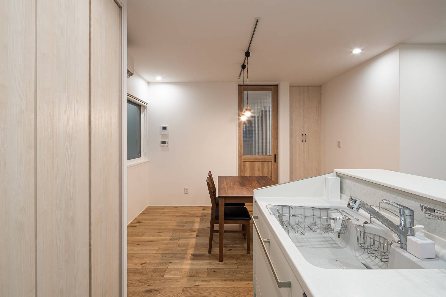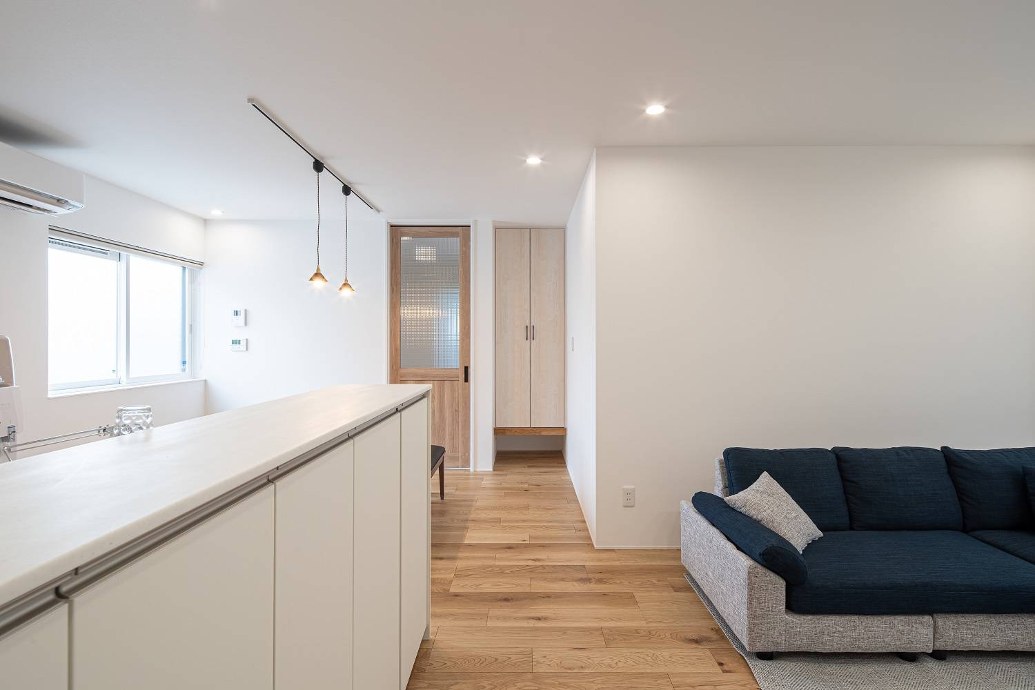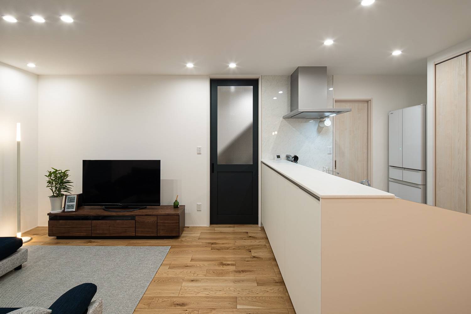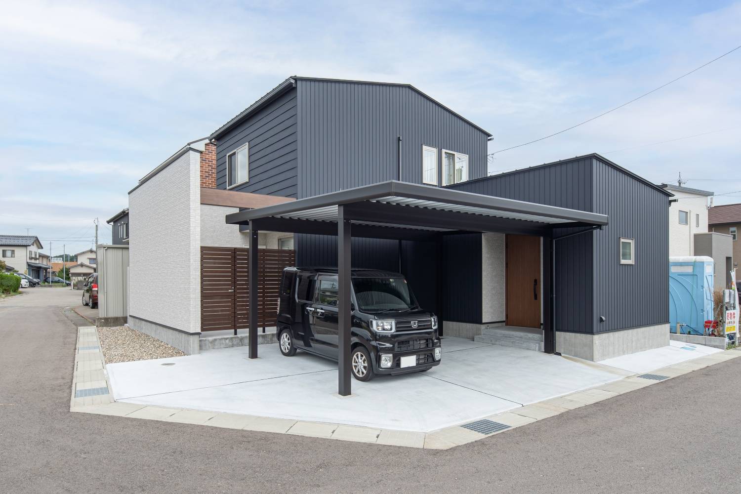外部からの視線を遮る中庭が憧れでした。 南面には隣家があるため、中庭を作ってもお隣の二階からは中が覗かれてしまう…。 北西に面した角地のポテンシャルを活かし、北面に大きな開口部を採用することでプライベートな空間と日中を通して安定した明るさを確保することができました。